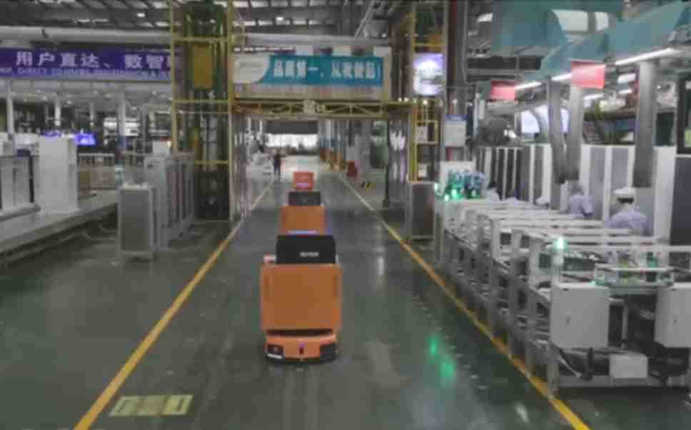 为车载冰箱物流配送打造的智能解决方案,,,,包含产中物流通过潜伏举升AMR搬运至线边,,,产后成品物流智能仓储,,,流程包含产中物流智能齐套入库,,线边安灯叫料AMR智能配送至线边,,,成品入库、、、、出库,,,,通过无人堆高车机器人,,,智能仓储管理替代人工作业管理,,,实现更高存储、、、更高效率、、、更具柔性化的解决方案。。。